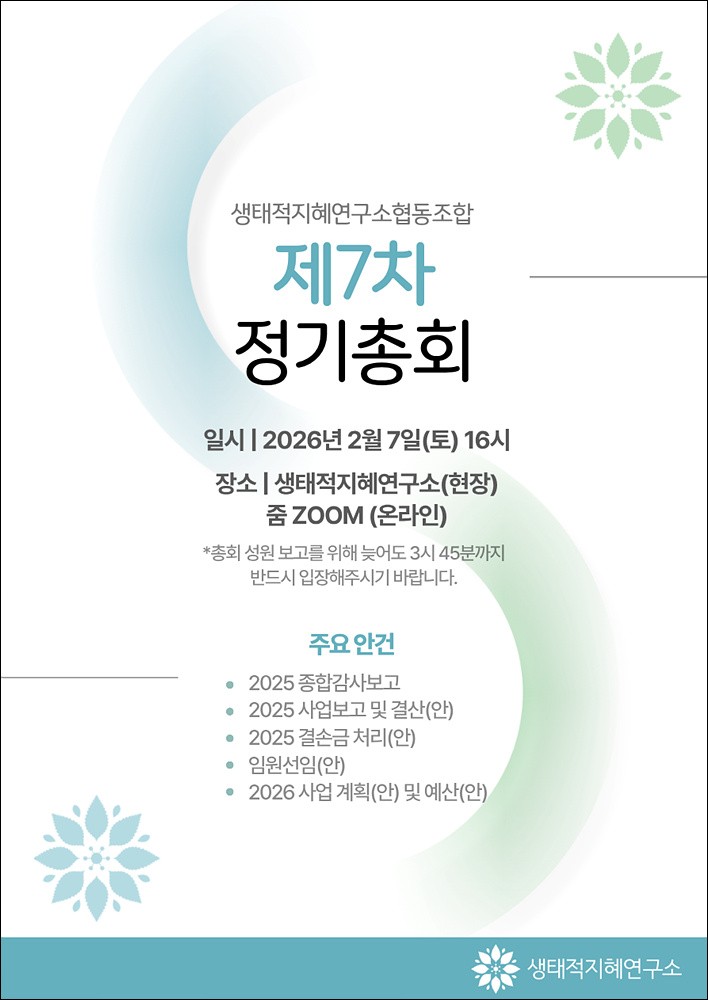 • 현장참석 – 생태적지혜연구소( 서울 영등포구 여의대방로47길 13, 2층)