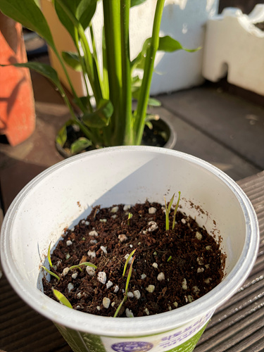 우리 첫 만남은 4월 27일이었어요. 토종벼 농사를 짓고 계신 분이 밭벼 발아한 걸 조금 나눠 주셨거든요. 마침 담아올 통이 없어서, 마시던 커피를 급하게 마저 마신 후 그 컵에다 흙을 담고 벼를 넣어서 데려 왔어요.